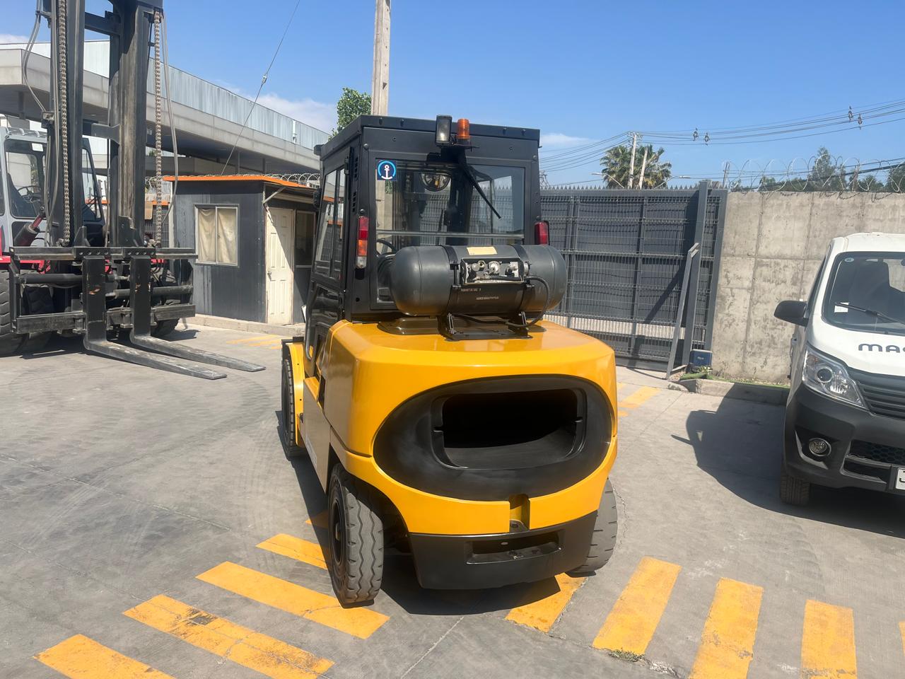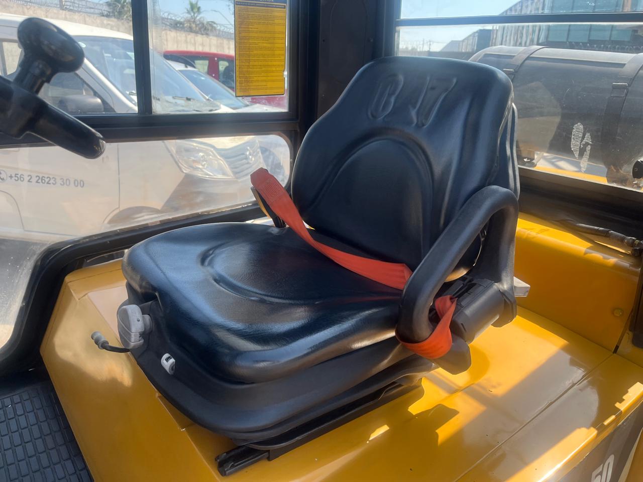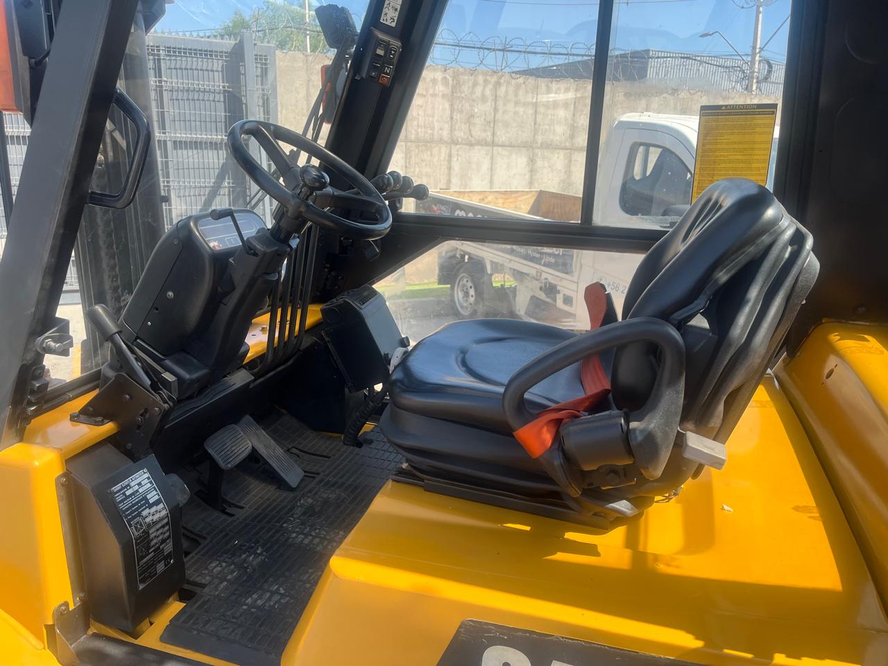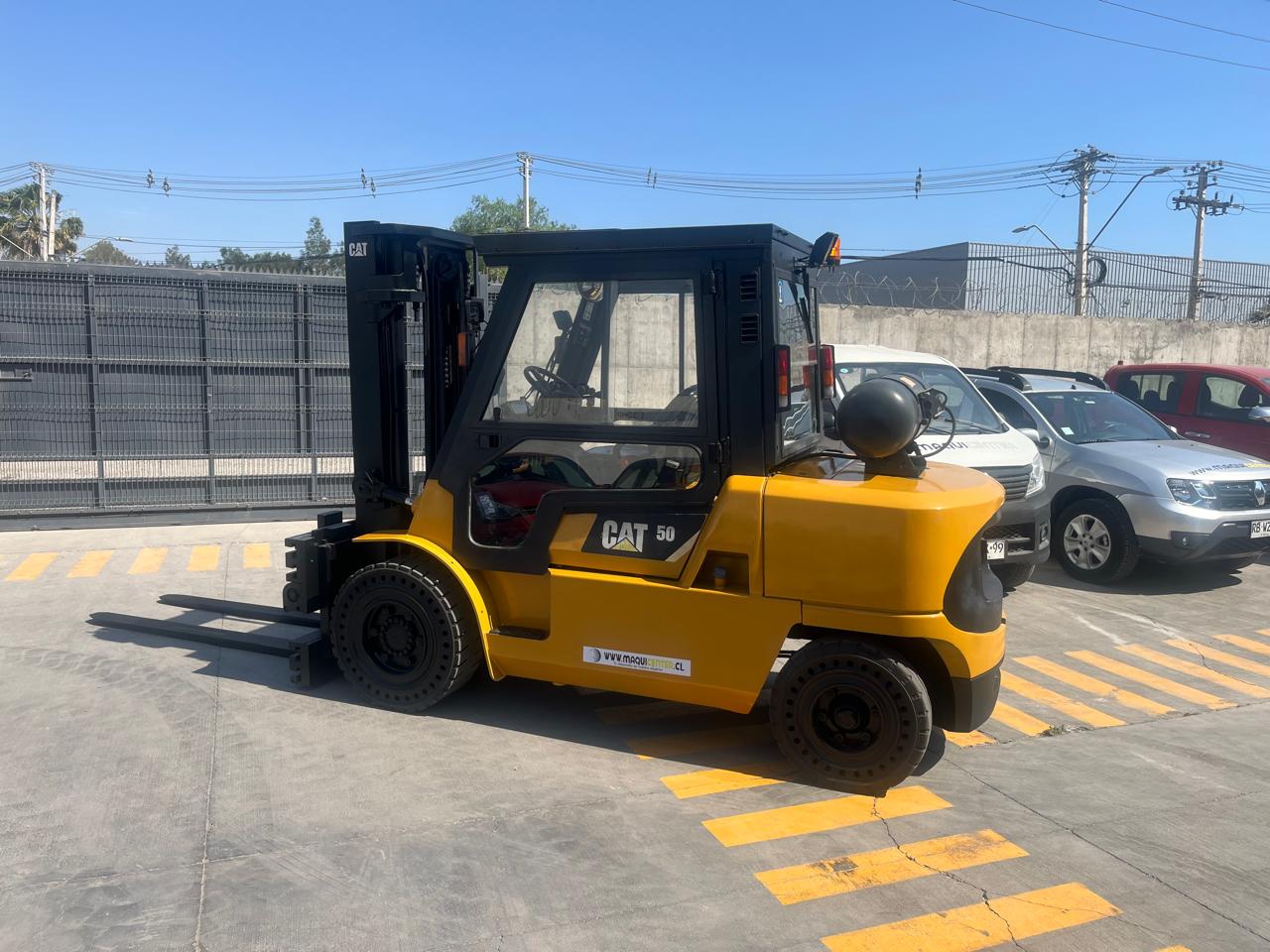 GRUA HORQUILLA MARCA CATERPILLAR MODELO GP50K2, NRO. DE SERIE ET33B50075,MOTOR NISSAN, MODELO B45 SERIE 096928, DE 5.000 KILOS DE CAPACIDAD DE CARGA, VISION LIBRE, MASTIL DOBLE DE 3,3 METROS , NEUMATICOS MACIZOS , DIRECCION HIDRAULICA, DESPLAZADOR DE CARGA Y POSICIONADOR DE UNAS HIDRAULICO , COMBUSTION GAS(LPG), CABINA COMPLETA, TRANSMISION AUTOMATICA , ANO DE COMERCIALIZACION 2018, IMPECABLE, USADA .