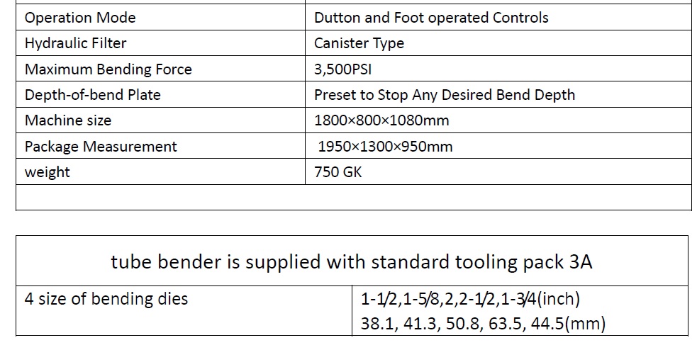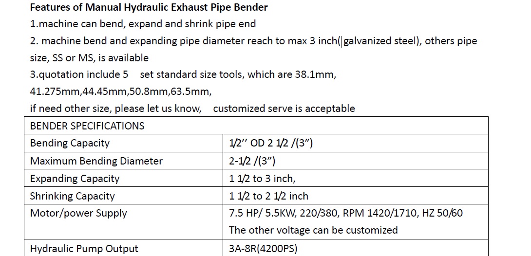 Características del doblador de tubos de escape hidráulico manual