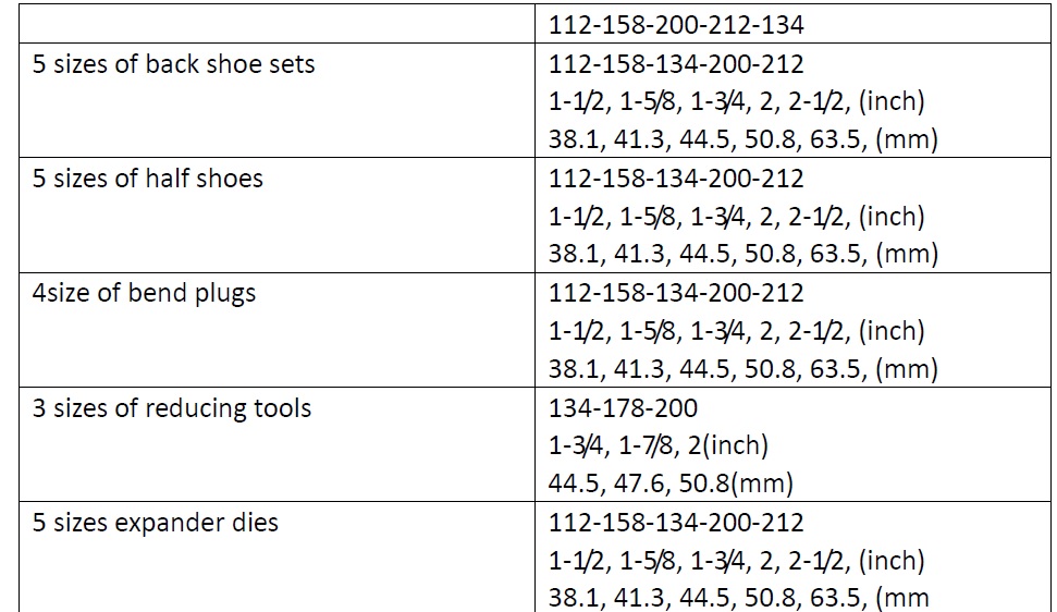 tubería, SS o MS, están disponibles. herramientas de tamaño, que son 38.1 mm, 41.275 mm, 44.45 mm, 50.8 mm, 63.5 mm, si necesita