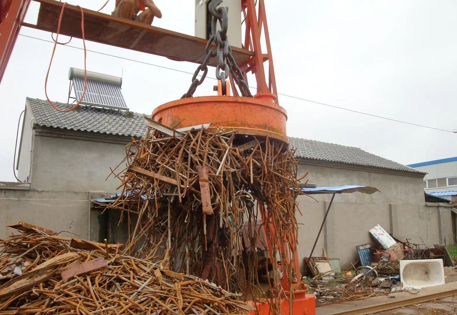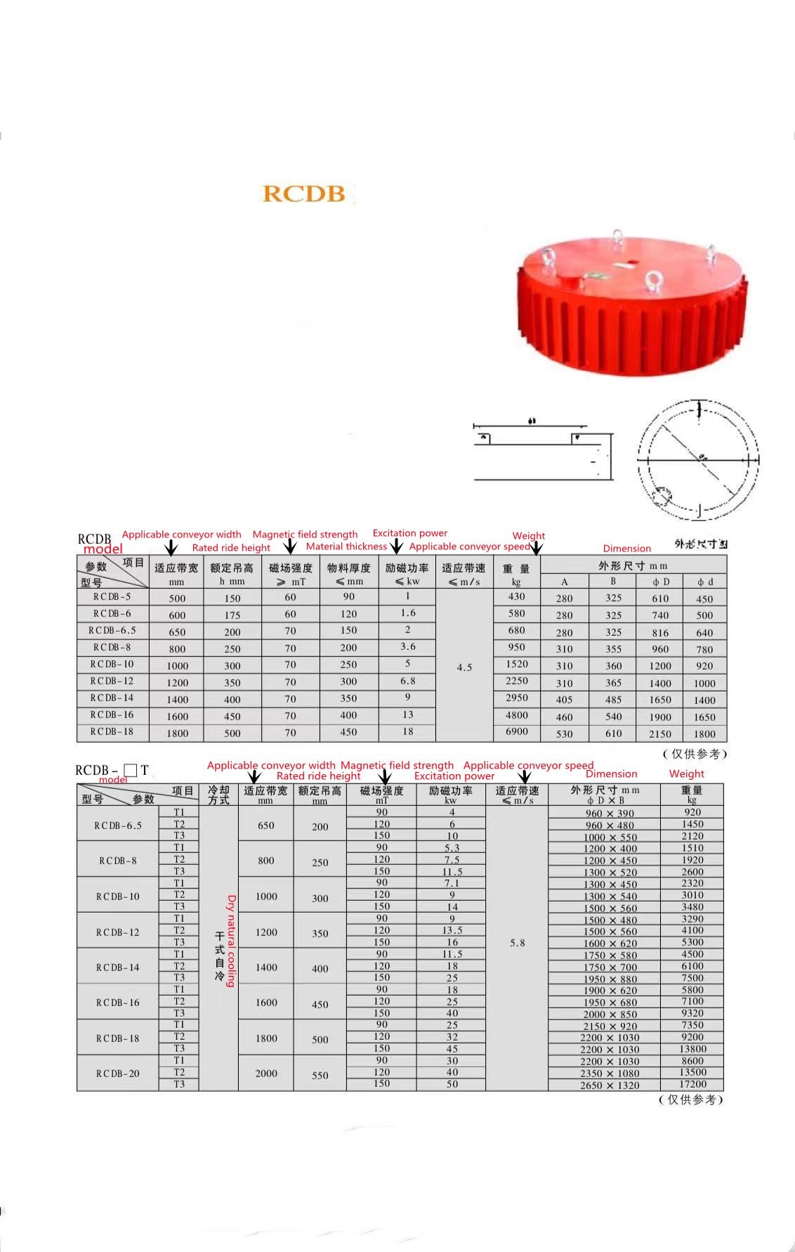 Electro-imán tipo colgante para mover piezas de acero y hierro, marca Tos Timemaster, Modelo MW5-100L/1. , Potencia necesaria: 8.5kw, Peso del equipo: 1.000kg, Dimensiones: diámetro 1000mm. Incluye: 1 Cuerpo de magneto colgante, 1 gabinete de rectificación, 1 juego de cables y 1 conector de cables.