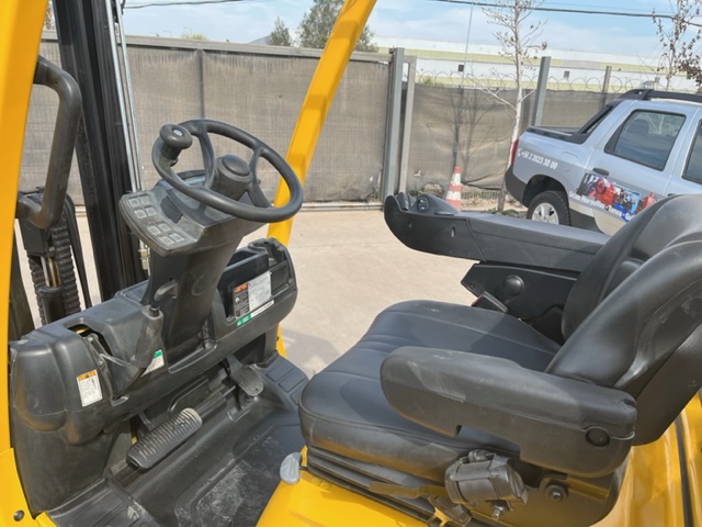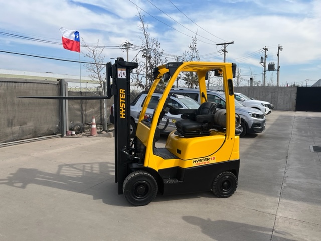 GRUA HORQUILLA MARCA HYSTER MODELO H1.6FT, NRO. DE SERIE F001B08850M, MOTOR MAZDA FE NUMERO F06217, DE 1.600 KILOS DE CAPACIDAD DE CARGA, VISION LIBRE, MASTIL DOBLE DE 3,2 METROS, ANO DE COMERCIALIZACION 2014, NEUMATICOS MACIZOS, DIRECCION HIDRAULICA , COMBUSTION LPG, TRANSMISION AUTOMATICA ,DESPLAZADOR, SOLO 4520 HORAS DE USO, IMPECABLE, USADA