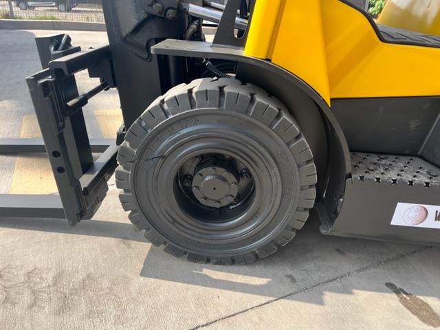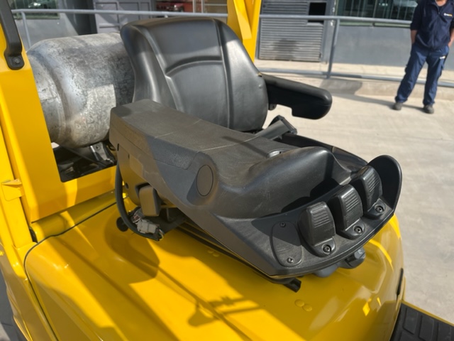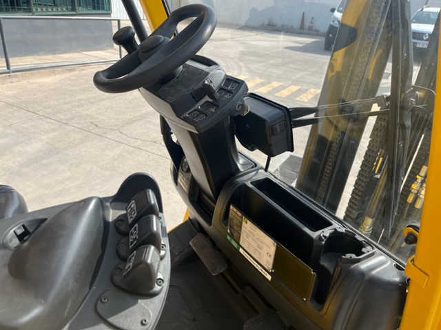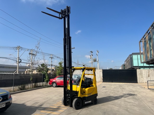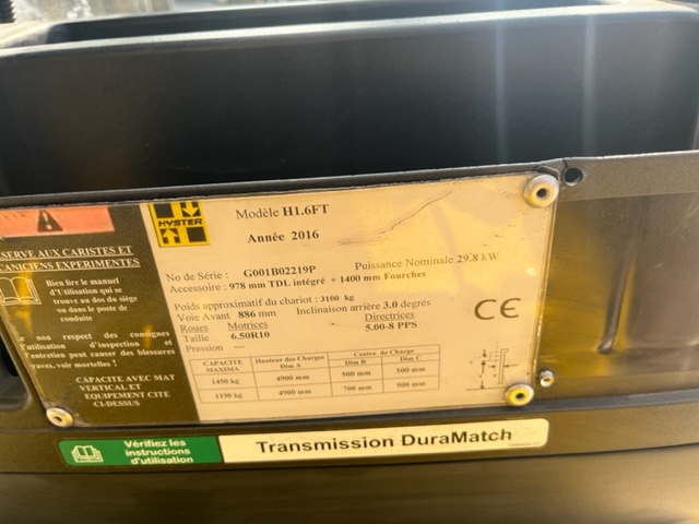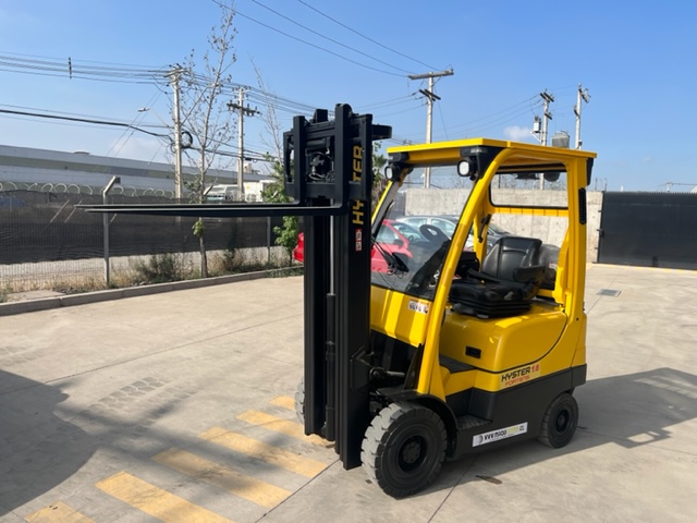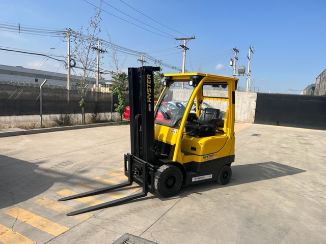 GRUA HORQUILLA MARCA HYSTER MODELO H1.6FT, NRO. DE SERIE G001B02219P, MOTOR MAZDA SRK1300 NUMERO 4C63S4M, DE 1.600 KILOS DE CAPACIDAD DE CARGA, VISION LIBRE, MASTIL TRIPLE DE 4.9 METROS, ANO DE COMERCIALIZACION 2016, NEUMATICOS MACIZOS, DIRECCION HIDRAULICA , COMBUSTION LPG, TRANSMISION AUTOMATICA ,DESPLAZADOR, IMPECABLE, USADA