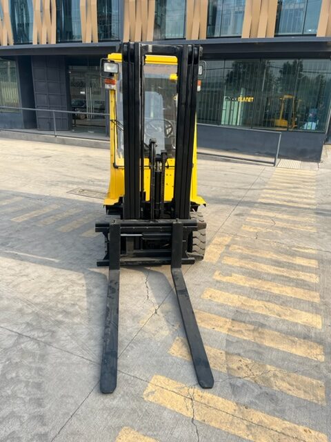 GRUA HORQUILLA MARCA HYSTER MODELO H2.00XMS, NRO. DE SERIE D001B130484, MOTOR MAZDA M4-2.0G NUMERO 0001484, DE 2.000 KILOS DE CAPACIDAD DE CARGA, VISION LIBRE, MASTIL TRIPLE DE 4,8 METROS, ANO DE COMERCIALIZACION 2008, NEUMATICOS MACIZOS, DIRECCION HIDRAULICA , COMBUSTION LPG, TRANSMISION AUTOMATICA ,DESPLAZADOR DE UNAS HIDRAULICOS, IMPECABLE, USADA