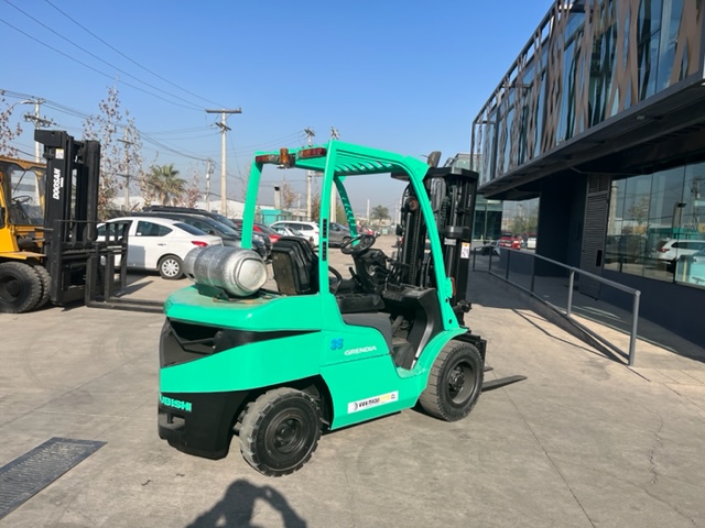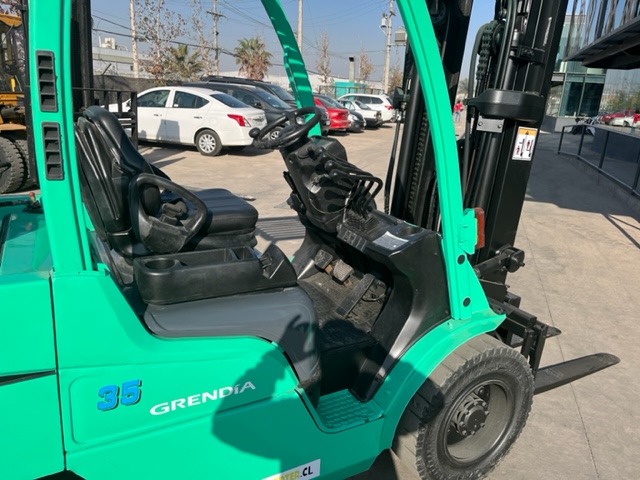 GRUA HORQUILLA MARCA MITSUBISHI MODELO FG35N, NRO. DE SERIE EF13FL51174, MOTOR NISSAN K25 DE 3.500 KILOS DE CAPACIDAD DE CARGA, VISION LIBRE, MASTIL TRIPLE DE 4,39 METROS CON LEVANTE LIBRE, NEUMATICOS MACIZOS , DIRECCION HIDRAULICA, DESPLAZADOR DE CARGA , COMBUSTION LPG, TRANSMISION AUTOMATICA , AÑO DE COMERCIALIZACION 2012, IMPECABLE, USADA .