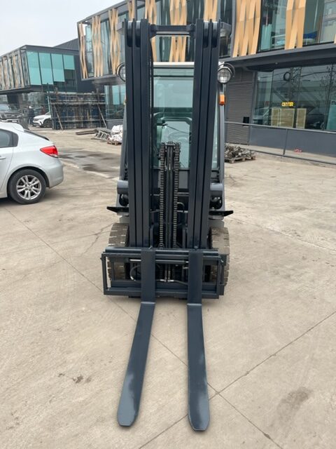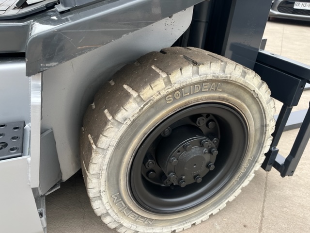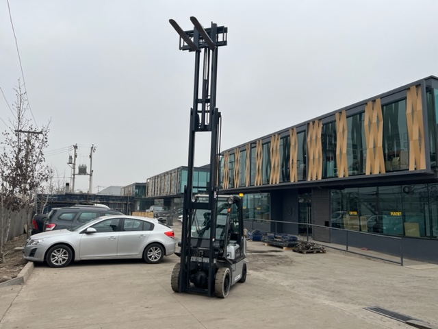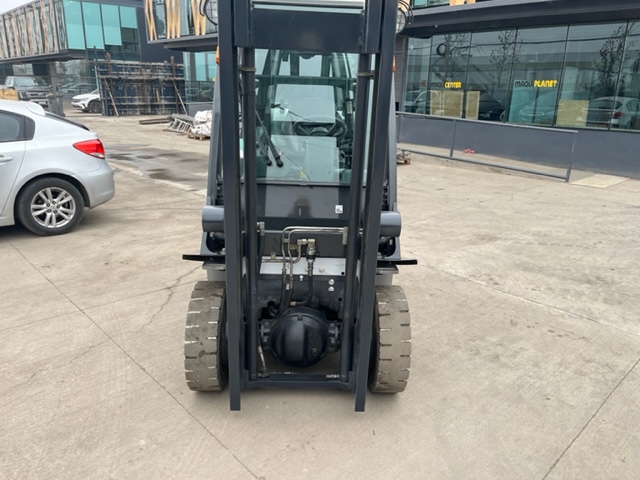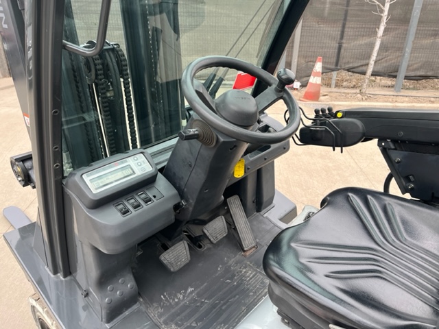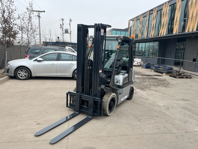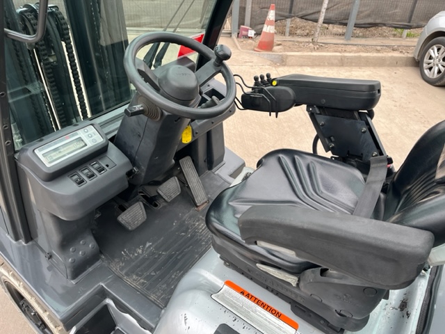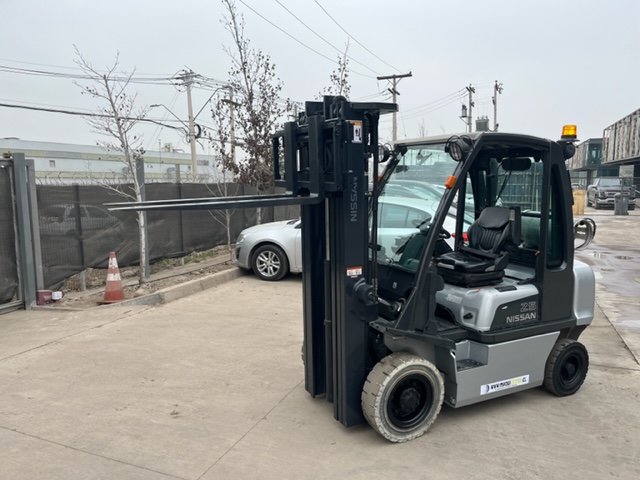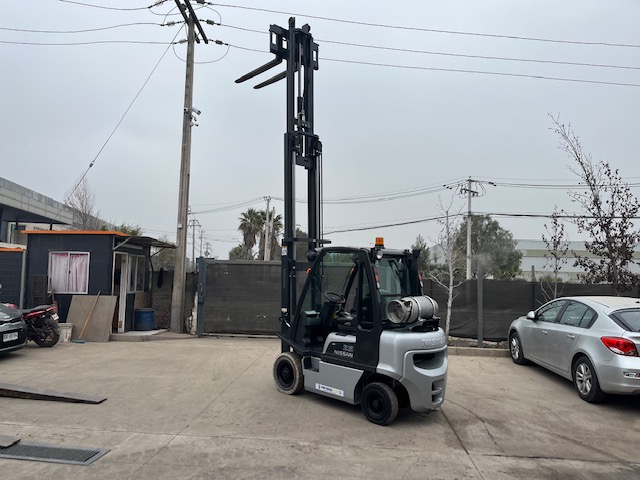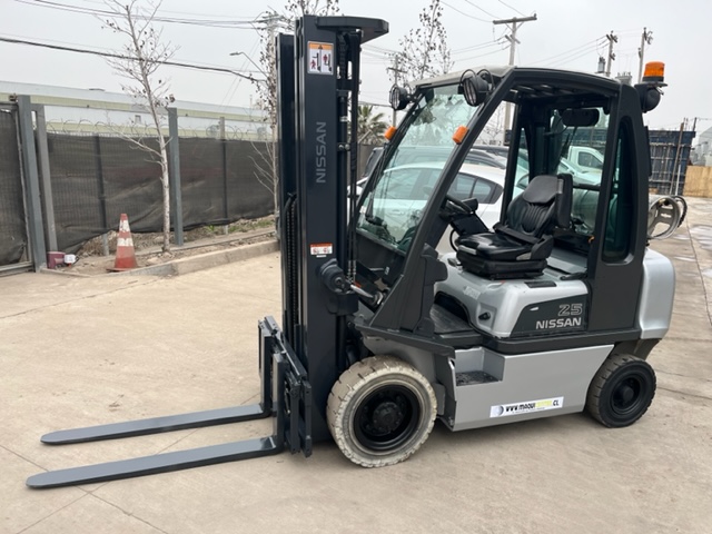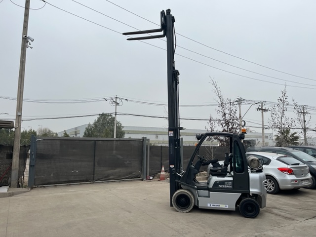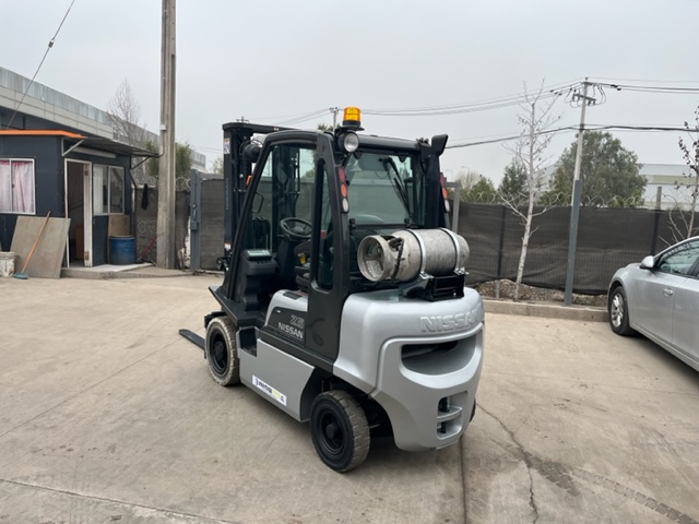 GRUA HORQUILLA MARCA NISSAN MODELO U1D2A25LQ, NRO. DE SERIE U1D2E700363, MOTOR NISSAN K25 NRO. K25-082139X, DE 2.500 KILOS DE CAPACIDAD DE CARGA, VISION LIBRE, MASTIL TRIPLE 5.1 METROS, ANO DE COMERCIALIZACION 2014, NEUMATICOS MACIZOS, DIRECCION HIDRAULICA , COMBUSTION GAS (LPG), TRANSMISION AUTOMATICA , SOLO 4692 HORAS DE USO,IMPECABLE, DESPLAZADOR, IMPECABLE, USADA