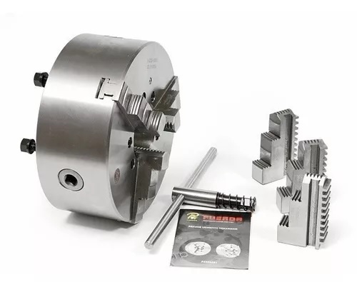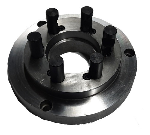 PLATO PARA TORNO DE 3 GARRAS DE 12″ O 325 MM DE DIAMETRO, CON PASADA DE HUSILLO DE 100MM, CON PINES (6) DE DIAMETRO DE 1´´ (25,4mm) ,NUEVO SIN USO.