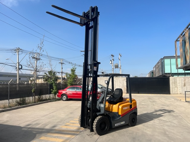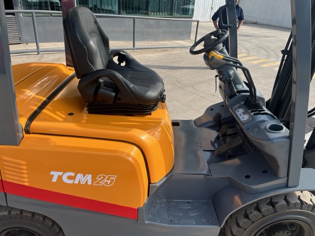 GRUA HORQUILLA MARCA TCM MODELO FD25T3, NRO. DE SERIE 2N507039, MOTOR NISSAN MODELO TD27 NRO. DE SERIE , DE 2.500 KILOS DE CAPACIDAD DE CARGA, VISION LIBRE, MASTIL DOBLE DE 4.0 METROS, NEUMATICOS MACIZOS , DIRECCION HIDRAULICA, DESPLAZADOR DE CARGA , COMBUSTION DIESEL, TRANSMISION AUTOMATICA , SOLO 8097 HORAS DE USO, ANO DE COMERCIALIZACION 2016, IMPECABLE, USADA .