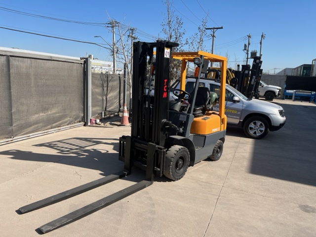 GRUA HORQUILLA MARCA TCM MODELO FGH18N8, NRO. DE SERIE 16S11831, MOTOR NISSAN MODELO H20 NRO. DE SERIE H20-K33675Y , DE 1.800 KILOS DE CAPACIDAD DE CARGA, VISION LIBRE, MASTIL TRIPLE DE 4,8 METROS CON LEVANTE LIBRE, NEUMATICOS MACIZOS , DIRECCION HIDRAULICA, DESPLAZADOR DE CARGA , COMBUSTION LPG, TRANSMISION AUTOMATICA , SOLO 5605 HORAS DE USO, ANO DE COMERCIALIZACION 2014, IMPECABLE, USADA .