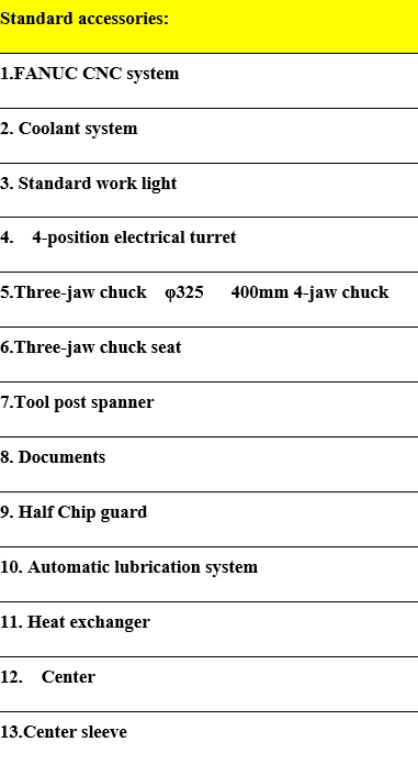 ACCESORIOS EXTRAS:PLATO HIDRAULICO DE 320mm Y CONTRAPUNTA HIDRAULICA,VALOR $ 9.990.000 + IVA, PORTA HERRAMIENTAS DE 6 POSICIONES, VALOR: $ 6.180.000 + IVA, LUNETA FIJA DE 20 A 300MM, VALOR $ 890.000 + IVA, LUNETA MOVIL DE 20 A 180MM, VALOR $890.000 + IVA.