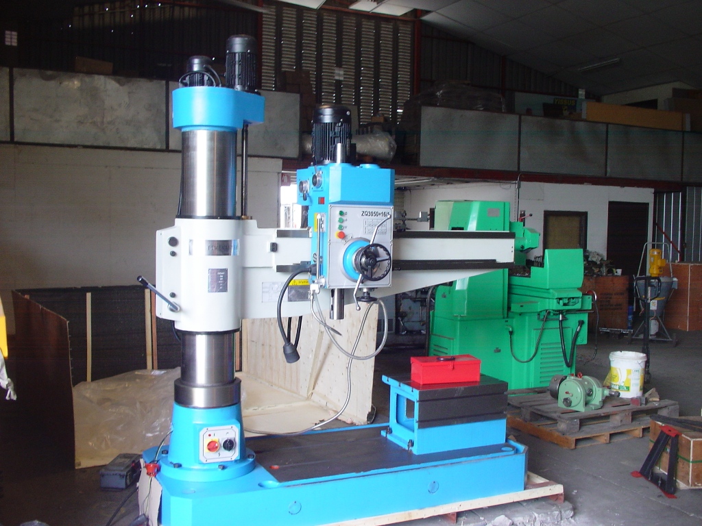 TALADRO RADIAL MARCA TOS TIMEMASTER , MODELO ZQ3050X16/1 , DE 50mm DE PERFORACION MAXIMA, CLAMP MECANICO PARA FIJAR LA BANDERA. DIAMETRO DE COLUMNA 350 mm, RECORRIDO DEL HUSILLO A LA COLUMNA DE 350 A 1600mm , ,HUSILLO MT5 , RECORRIDO DEL HUSILLO 315mm, 6 VELOCIDADES DEL HUSILLO DE 78 A 1100 R.P.M.,MINIMA Y MAXIMA DISTANCIA DEL HUSILLO A LA BASE DEL TALADRO 320 A 1.220mm , DIMENSIONES DEL CUBO DE TRABAJO 630 X 500 X 500mm , DIMENSIONES DE LA BASE DEL TALADRO 2430 X 2430 X 950mm,MOTOR PRINCIPAL DE 4 KW,DE 3500 KILOS DE PESO,NUEVO SIN USO.