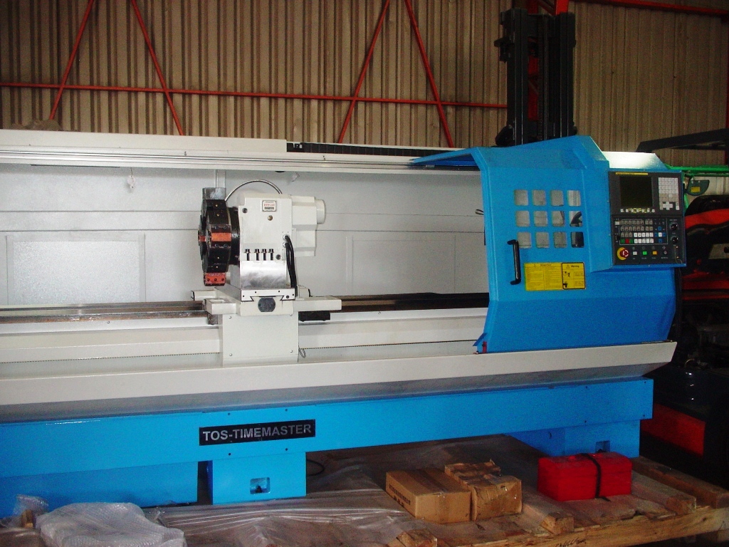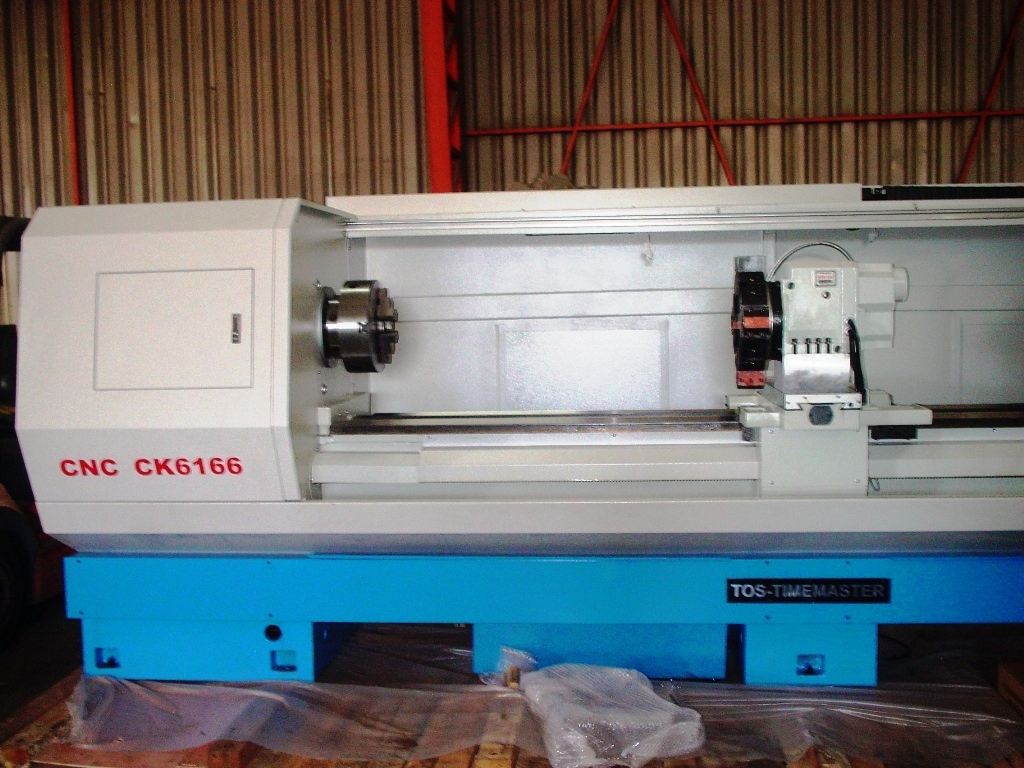 TORNO DE CONTROL NUMERICO MARCA TOS-TIMEMASTER MODELO CK6166/3000, DE 660 mm DE VOLTEO SOBRE LA BANCADA ,VOLTEO SOBRE EL CARRO 430 mm Y 3000 mm ENTRE CENTROS, CON PASADA DE HUSILLO DE 105 mm Y CONTROL NUMERICO MARCA FANUC ( JAPONES ) MODELO OI MATE TF(5) SYSTEM,PLATO MANUAL, CONTRAPUNTA NORMAL Y PORTA HERRAMIENTAS DE 8 POSICIONES ELECTRICO,MOTOR DE 15 H.P.,VELOCIDADES DEL HUSILLO ( 8 ) DE 27 A 1630 RPM,CON LUNETA Y FULL CABINADO , NUEVO SIN USO.