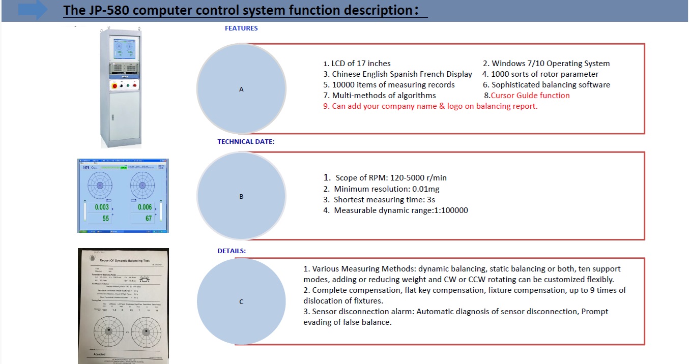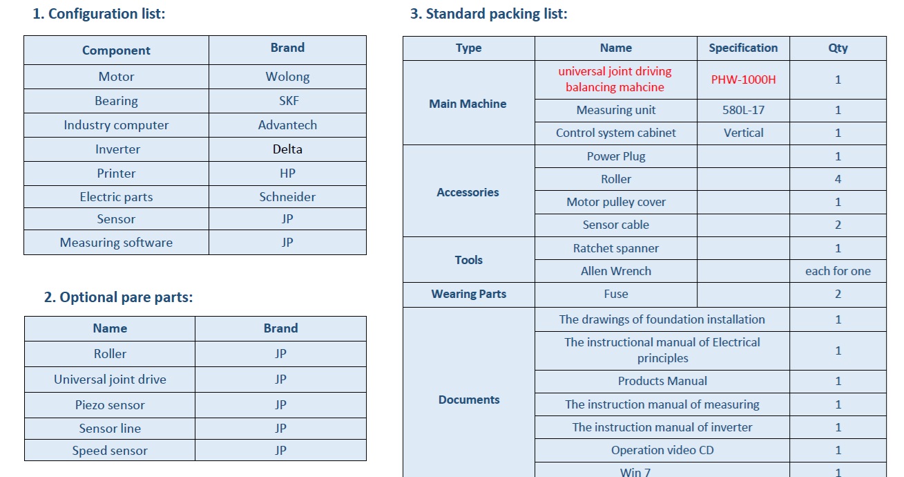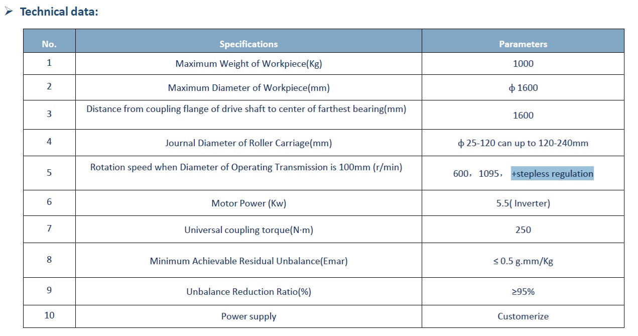 Balanceadora dinámica, marca Tos-Timemaster , modelo PHW-1000 H, para ejes y poleas, Capacidad de peso entre centros : 1000 kilos, Díametro máximo : 1600 mm., Distancia entre Los dos soportes de rodamiento de 160-1780 mm , díametros de los ejes de 25 a 240 mm.,La velocidad de rotacion cuando el diametro de la transmision operativa es de 100mm puede varias entre 600 a 1095 r/min )regulacion continua=, potencia de motor de 5,5kw inverter, cantidad residual no balanceable igual o menor a 0,5 g.mm/kg ,Peso de la maquina aprox. 1.000 kilos., Dimensiones de la maquina embalada : 2200x900x1603 mm.