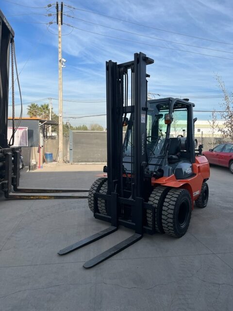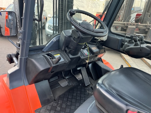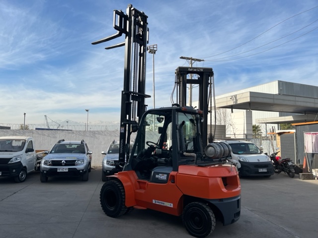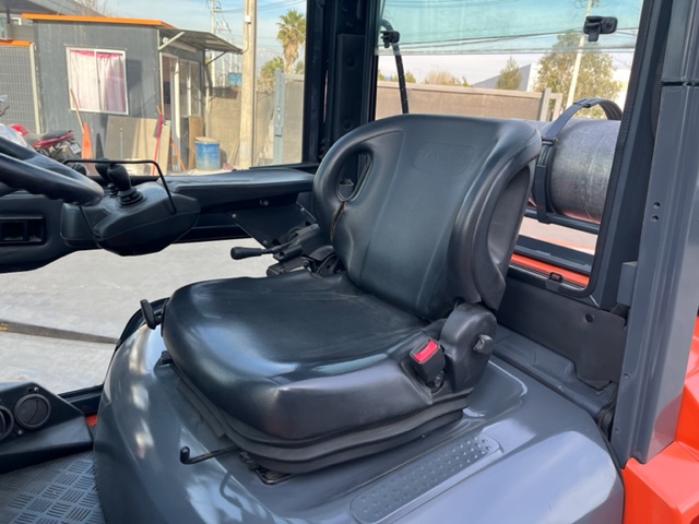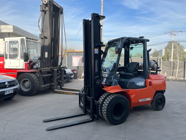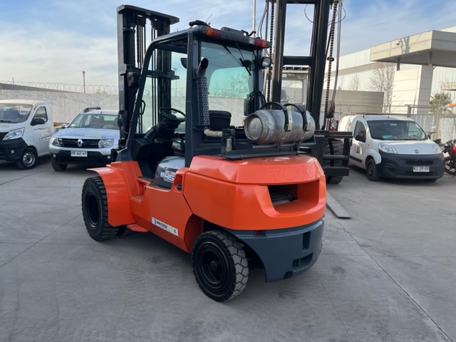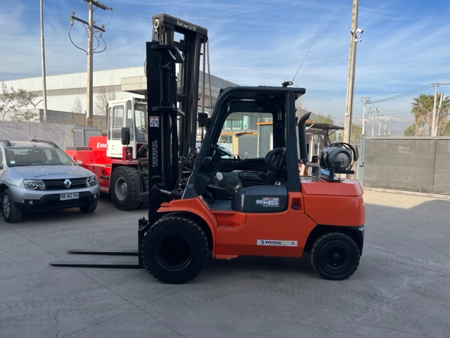 GRUA HORQUILLA MARCA TOYOTA MODELO 02-7F40, NRO. DE SERIE A7FGA50-51030 , MOTOR TOYOTA 3F, NRO. 17693, DE 4.500 KILOS DE CAPACIDAD DE CARGA, VISION LIBRE, MASTIL DOBLE DE 4,5 METROS, NEUMATICOS MACIZOS DOBLES EN EL FRENTE , DIRECCION HIDRAULICA, DESPLAZADOR DE CARGA , COMBUSTION BENCINA-LPG ( DUAL), TRANSMISION AUTOMATICA , VIDRIO DELANTERO Y TRASERO Y PUERTA AL LADO DERECHO, ANO DE COMERCIALIZACION 2011, IMPECABLE, USADA .