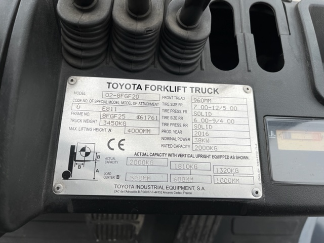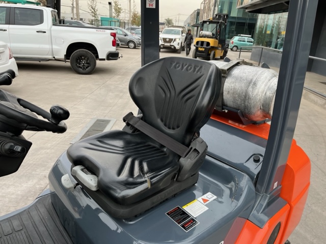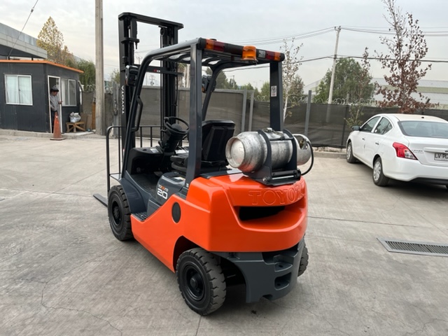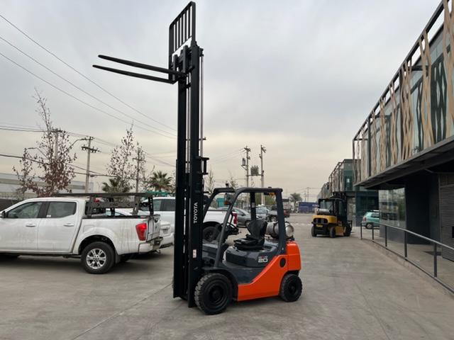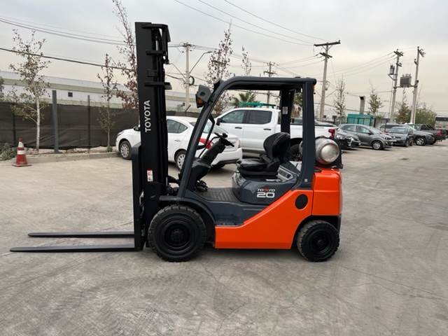 GRUA HORQUILLA MARCA TOYOTA MODELO 02-8FGF20, NRO. DE SERIE 61761, MOTOR TOYOTA NRO.4Y- 2577342 DE 2.000 KILOS DE CAPACIDAD DE CARGA, VISION LIBRE, MASTIL DOBLE DE 4.0 METROS CON LEVANTE LIBRE, NEUMATICOS MACIZOS , DIRECCION HIDRAULICA, DESPLAZADOR DE CARGA , COMBUSTION LPG, TRANSMISION AUTOMATICA , AÑO DE COMERCIALIZACION 2016, IMPECABLE, USADA .