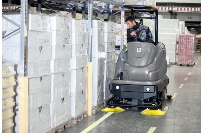 Lo más compacta posible con todo el ancho útil necesario: nuestra fregadora-aspiradora con conductor sentado accionada por batería B 250 R + D 100 con cepillo circular sobresale en la limpieza y conservación de superficies de hasta 12.000 m². La potente batería (36 V/630 Ah) y el depósito de 250 litros de capacidad posibilitan largos intervalos de trabajo; la corta distancia entre ejes asegura una gran maniobrabilidad y permite también el empleo en espacios estrechos. El equipo, disponible en numerosas variantes de configuración, es muy sencillo de manejar gracias a los elementos de control con código de colores, el interruptor EASY Operation y el gran display en color para el ajuste de los modos de limpieza, al tiempo que el innovador sistema de llave KIK excluye prácticamente la posibilidad de manejos erróneos. Nuestro modo eco!efficiency patentado reduce la potencia de la turbina y el caudal de agua con solo pulsar un botón, limitando de esta forma considerablemente el consumo de energía y agua. A petición es posible también la conexión a nuestro sistema de gestión de flotas basado en la nube Kärcher Fleet para optimizar la supervisión y el aprovechamiento del equipo.