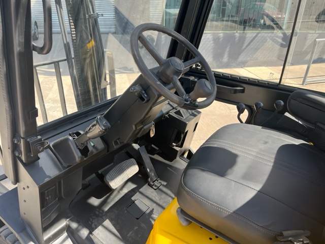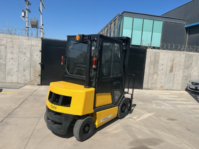 GRUA HORQUILLA MARCA YALE MODELO GDP25TF, NRO. DE SERIE A875B27676B, MOTOR MAZDA XA, DE 2.500 KILOS DE CAPACIDAD DE CARGA, VISION LIBRE, MASTIL DOBLE E 3,5 METROS CON LEVANTE LIBRE, FULL CABINA, NEUMATICOS DE AIRE , DIRECCION HIDRAULICA, DESPLAZADOR DE CARGA , COMBUSTION DIESEL, TRANSMISION AUTOMATICA , AÑO DE COMERCIALIZACION 2014, USADA .